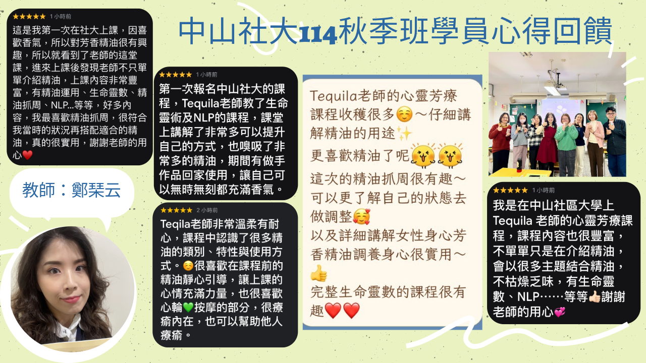 全方位精油芳療-從青少年到樂齡-中山社大114秋季班學員心得回饋